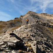 Difficoltà: Da Valletta alle cime e fino alla Farcletta digl Lai Grand, terreno sassoso e friabile